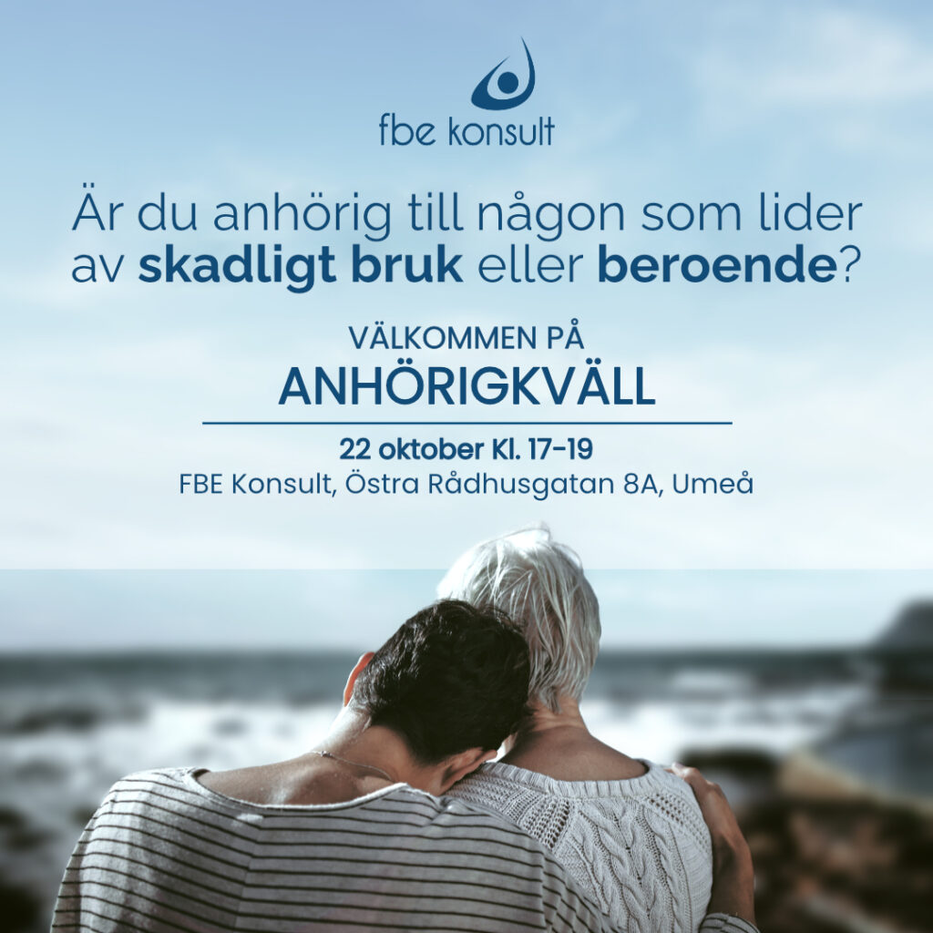 Vi på FBE Konsult vill bjuda in dig till vår Anhörigkväll den 22 oktober kl. 17.00–19.00 på Östra Rådhusgatan 8A i Umeå.